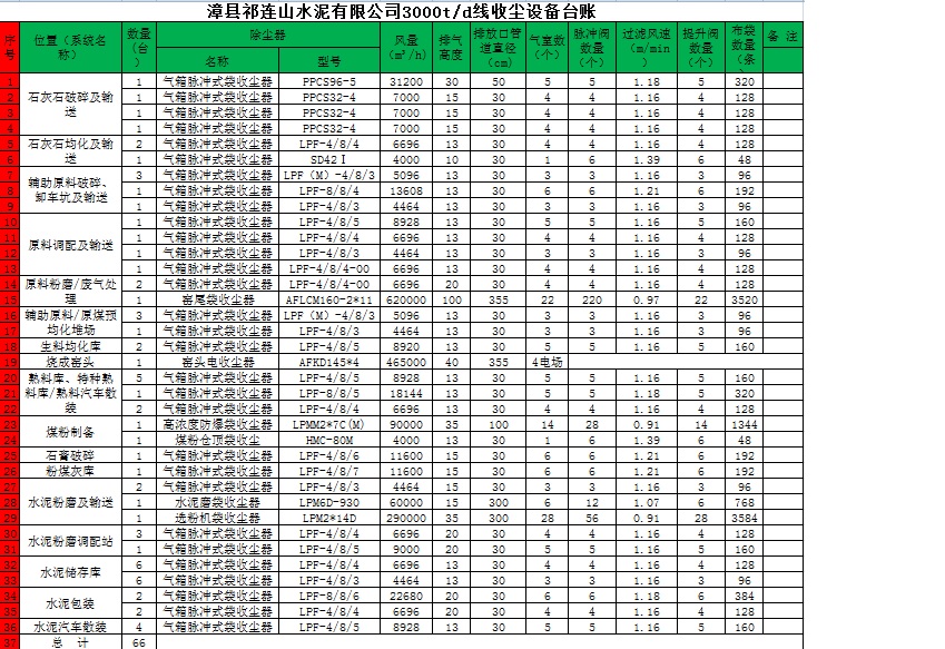②4500t/d線窯頭煙氣經袋式除塵器,經過窯頭罩-—篦冷機—靜電除塵—窯頭風機—煙囪,煙囪高30米,直徑4.15米有組織點源方式穩定連續排入大氣。  | |||