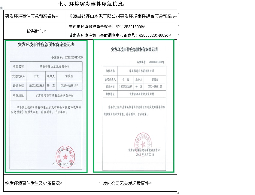漳縣祁連山水泥有限公司關于環境信息公開的公告