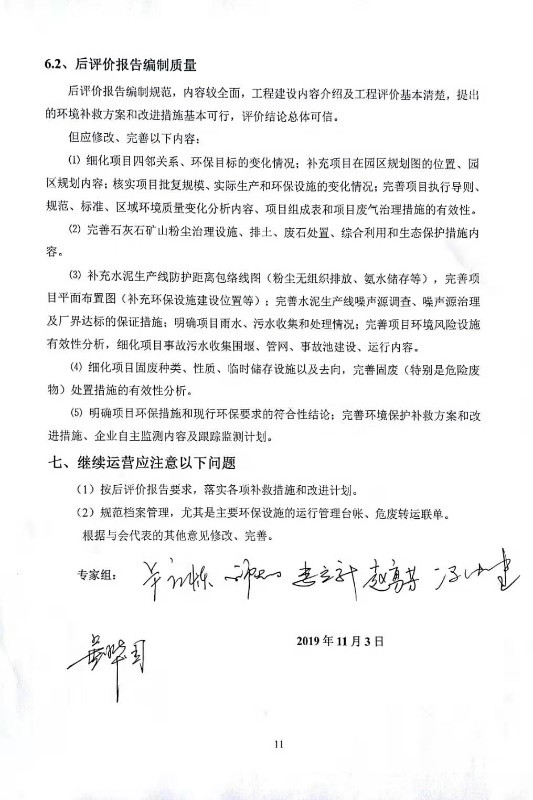 會前,建設單位組織與會代表對項目水泥生產線情況進行了現場查看;會上建設單位介紹了項目運營及環保設施運行情況,報告編制單位對后評價報告主要內容進行匯報,經過認真討論和評議,形成審查會專家組意見如下。