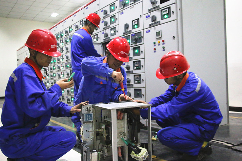 6號早上8點,二線水泥窯系統開始定檢。一場大雨過后,天氣聚然變涼。巡檢工楊海平、陳旭兵、周杰三人正在更換1603下料口擋料皮子,蒙蒙細雨中,他們切割雨水浸濕的皮帶,感受到秋雨的寒涼。馬小軍和雍群、賈維等人更換1107皮帶減速軸油封,這項工作完成后,他們還要去檢查更換煤磨鉸刀吊瓦架。張宏、李寶平等準備更換煤磨導向塊方向,在與電工一起研究后,他們決定先辦停電工作票,然后盤磨、拆卸。侯成斌和馬旺子等在檢查篦冷機液壓油管漏油問題,他們卸下油管接口后,和徐生雙、楊小強等商量,如果將接口磨薄一些后,漏油問題就可以解決了。弓小輝和孔亮正在補焊2640羅茨風機進風口消聲器,10分鐘后,他們推著電焊機,去往下一個工作點。熟料部、生產處的電工分布在各供、配電系統,檢查、維修。二線窯尾低壓電氣室,生產處副處長包曉東正在維修壓縮空氣供電柜,他是一名老電工,經驗足、速度快,在他的帶領下,大家有分工有合作,三個供電柜,很快維修完成。經過一天一夜的奮戰,7號下午2點,二號窯點火烘窯,定檢工作全部結束。