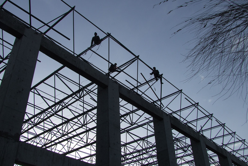 為了(le)便于存(cun)儲原煤,平涼公(gong)司于今年8月開始修建原煤堆(dui)棚,目前已進(jin)入頂棚安裝階段。圖為施工人員正在搭(da)建頂部(bu)的龍骨。(郭阿(a)龍/報道)