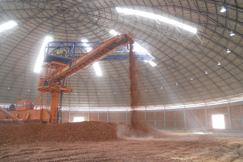 日前,漳縣公司二線項目石灰石預均化系統進入試運行階段,圖為布料機布料的情景。(王麗紅/報道)