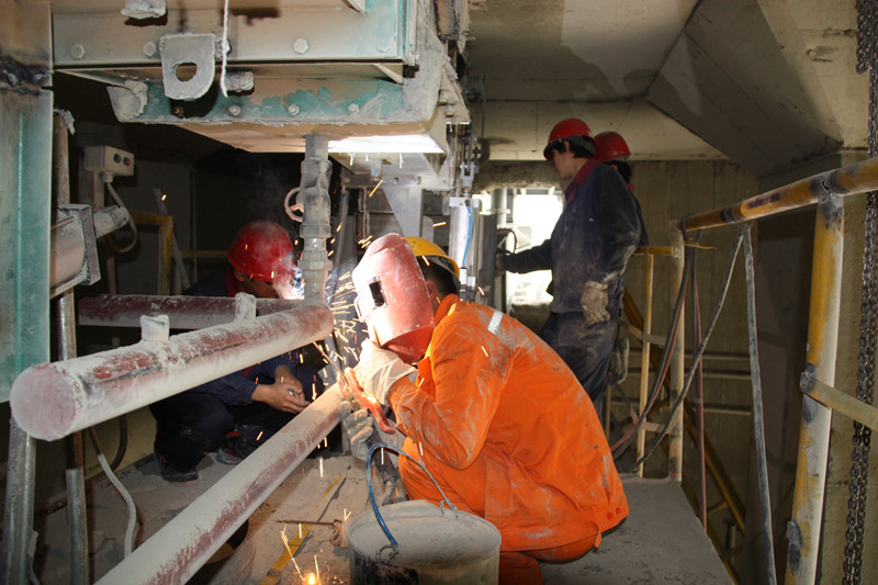 為了滿足32.5級散(san)裝(zhuang)水(shui)泥(ni)出廠需求,國慶節期間,成縣(xian)公司安排(pai)維修(xiu)部(bu)加班(ban)加點完成了兩個水(shui)泥(ni)庫散(san)裝(zhuang)卸料裝(zhuang)置改(gai)造(zao),為滿足產品需求奠(dian)定了基礎。圖為維修(xiu)部(bu)職(zhi)工(gong)正(zheng)在緊(jin)張(zhang)地進(jin)行設備改(gai)造(zao)收尾工(gong)作。(成縣(xian)公司 路永梅/報道)