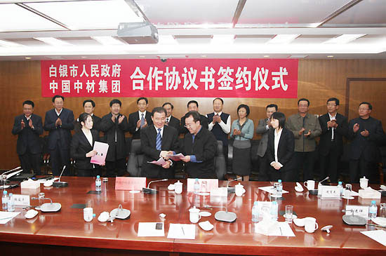 11月18日, 中材 集團與甘肅省白銀市在集團總部簽署了戰略合作協議書。雙方表示將抓住西部大開發和甘肅省發展的戰略機遇,圍繞 中材 集團西北區域龍頭戰略目標,積極推動白銀市的經濟建設和城市轉型,進一步促進 中材 集團在白銀市的產業發展。