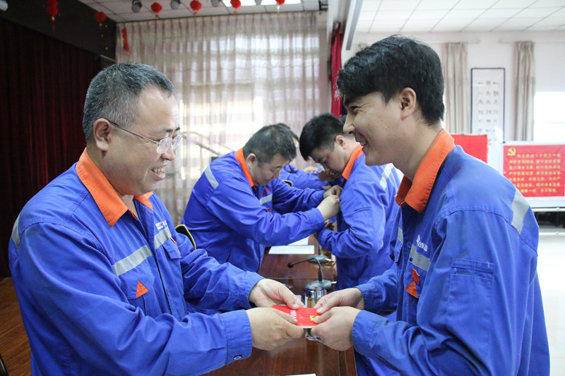 成縣公(gong)司(si)黨(dang)(dang)委向新黨(dang)(dang)員佩戴黨(dang)(dang)徽、頒發黨(dang)(dang)章(zhang)