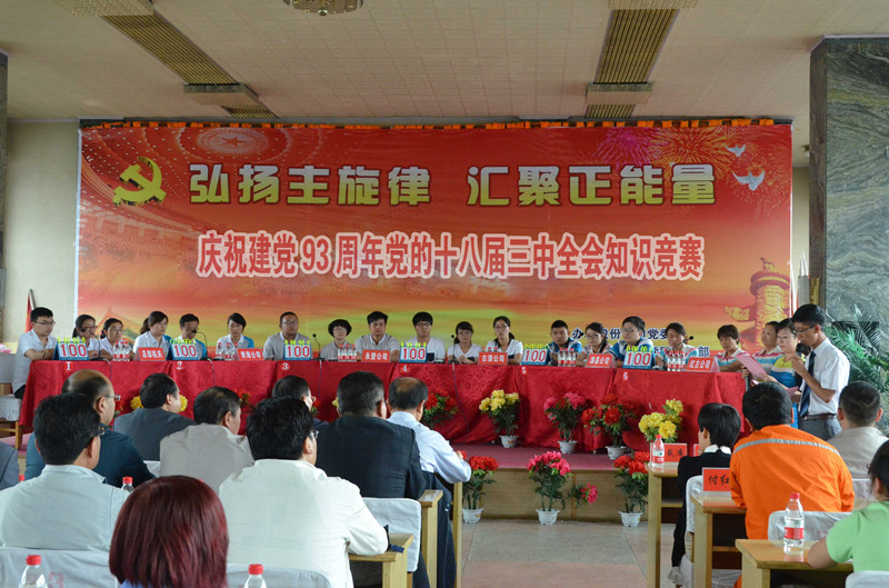 6月25日,公司慶祝建黨93周年黨的十八屆三中全會精神知識競賽在永登公司六樓會議室精彩上演。來自總部機關和各子公司的14支代表隊匯聚一起,摩拳擦掌,以題會友,拿出自己最好的水平競相挑戰。