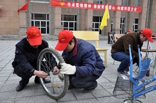在永登公司世紀廣場,50余名青年志愿者集聚在一起,開展了近3個小時的便民服務活動,健康義診200余人次,焊補生活器具43件,修理小家電11件,修配鑰匙38把,印制消防環保宣傳畫23幅,發放宣傳單100多頁,修理自行車4輛。