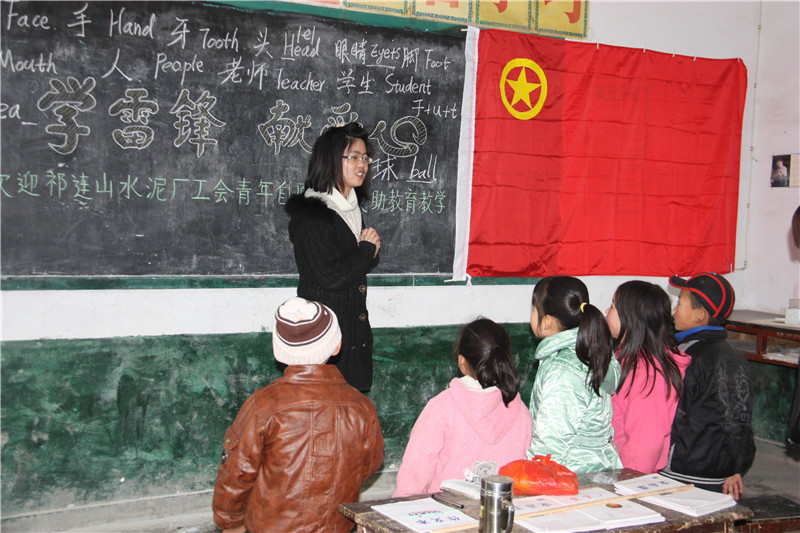 ( 成(cheng)縣(xian)祁連山公(gong)司職工志愿者進行課(ke)程輔(fu)導 路永梅/攝)