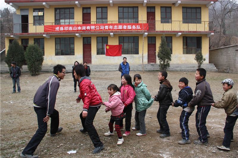 (成(cheng)縣祁連山公司職工(gong)志(zhi)愿者與當地小(xiao)學生開展聯誼(yi)活(huo)動 路永梅/攝)