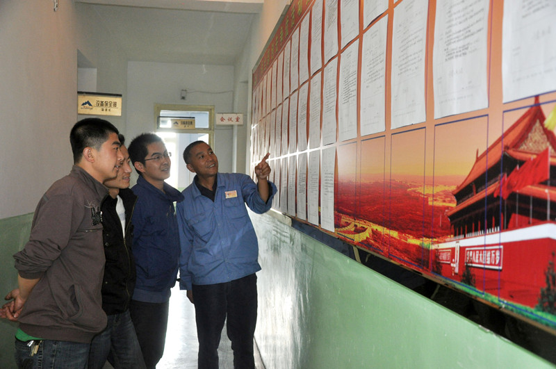 日前,永登公司黨委認真貫徹落實控股公司黨委關于創先爭優活動中開展“一諾三評三公開”的活動要求,結合機構整合和人員分流的實際,圍繞年度工作目標,重新修訂公開承諾書。圖為保全黨支部職工閱讀黨員公開承諾書。