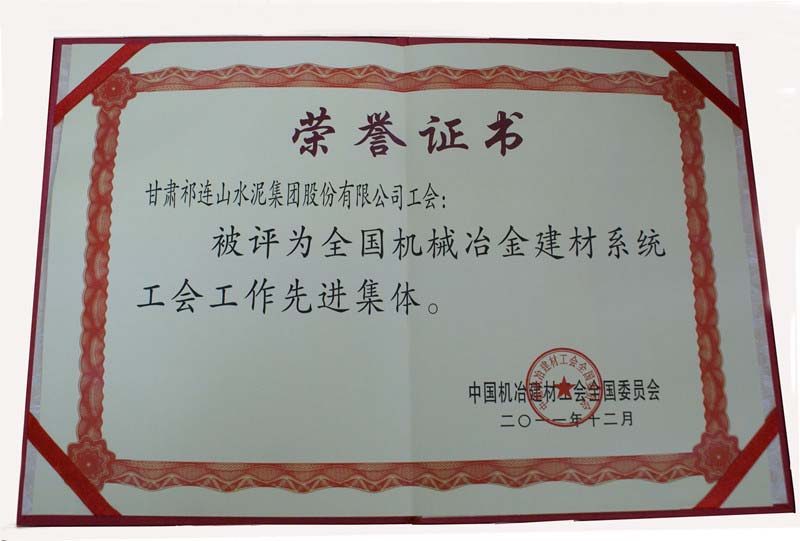 公司工會榮獲“全國機械冶金建材系統工會工作先進集體”稱號
