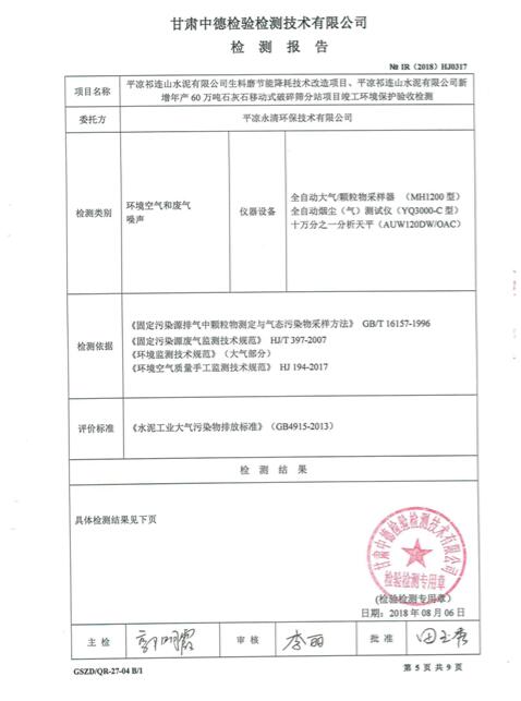 2018年7月20日,平涼祁連山水泥有限公司委托平涼永清環保技術有限公司開展平涼祁連山水泥有限公司生料磨節能降耗技術改造項目環境保護驗收工作任務,平涼永清環保技術有限公司在現場勘驗的基礎上提出了竣工驗收監測方案,于2018年7月23號,委托甘肅中德檢驗檢測技術有限公司對本項目大氣、噪聲進行了驗收監測,平涼永清環保技術有限公司編制完成了該項目驗收監測表。