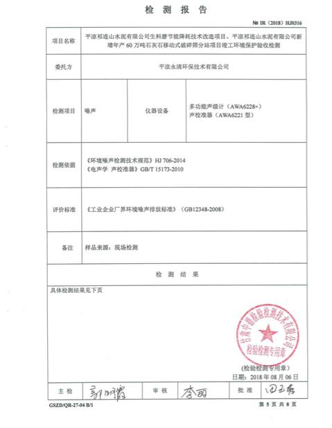 平涼祁連山水泥有限公司生料磨節能降耗技術改造項目竣工環境保護