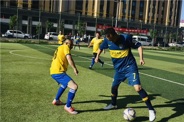 賽場上,運動員你踢我頂、有防有攻,既有競技拼搏的激情,也洋溢著團結和諧的氛圍,現場歡呼聲此起彼伏,精彩的場面層出不窮。