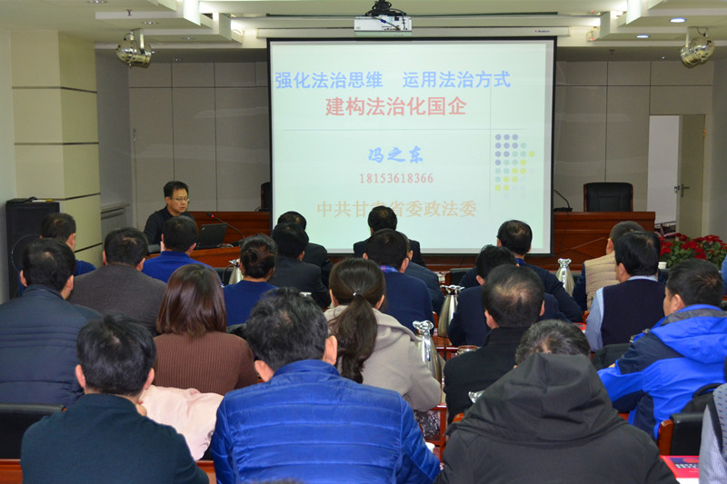 2017年12月22日,公司在三樓會議室組織“依法治企”、“合同法律風險防范”主題的法律實務講座,邀請甘肅省委政法委執法督導處處長馮之東、白銀有色集團股份有限公司法律事務部負責人多英璘進行專題講授,公司副總裁李生鈺、呂克儉、林海平、王學政、總裁助理李向春及總部相關管理人員、各子公司分管法務工作領導及法務聯絡員共計60余人參加了講座培訓。