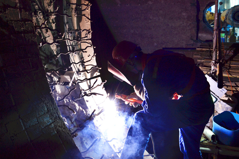 經過煤磨袋收塵,袋收塵進風管道口焊花飛濺。熟料部值班長羅小東正帶領著王正君、石永達活躍在檢修現場。他說:“煤磨袋收塵進風管道磨損嚴重,這次檢修主要就是對磨損的管道進行焊接。由于袋收塵存在粉塵、CO氣體以及靜電等危險有害因素,動火作業時最容易引起爆炸,危險性很高。焊接時必須打開防爆閥,使收塵上下保持通風,然后進行氣體檢測,清理風道、細粉鉸刀煤粉等一系列的作業前準備工作。煤磨系統是咱們水泥行業的一個高級危險源,所以作業時容不得半點馬虎。”
