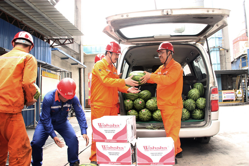 近日,成縣、古浪、隴南、紅古公司分別組織開展“夏送清涼”活動,為奮戰在一線的職工送去飲料、瓜果、藿香正氣水等防暑降溫用品,讓員工們在炎炎夏日感受到企業的濃濃關愛。圖為成縣公司送清涼的情景。( 路永梅 孫光亮 張盛得 楊芳棟/報道)