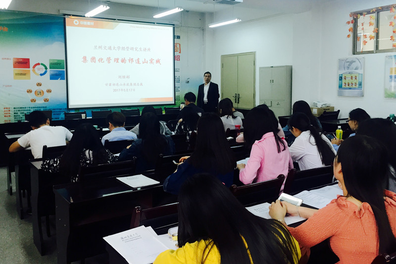 本網訊 5月17日,應蘭州交通大學經濟管理學院邀請,公司總裁劉繼彬在蘭州交通大學經濟管理學院進行學術交流并作了題為《集團化管理的祁連山實踐》的學術報告。講座由蘭州交通大學經濟管理學院副院長王久梗教授主持,蘭州交通大學經濟管理學院學院院長、MBA教育中心主任趙延龍教授、部分青年教師和全日制企業管理、產業經濟學、會計專業碩士研究生聽取了報告。