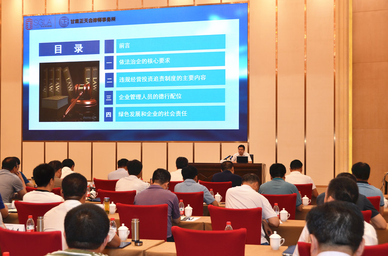 甘肅正天合律師事務所合伙人趙文通從依法治企的核心要求、違規經營投資追責制度的主要內容、企業管理人員的德行配位、綠色發展和企業的社會責任四個方面,并結合案例開展了企業法律培訓。西北師范大學社會發展與公共管理學院教授路憲民圍繞“卓越領導力”的主題,從領導與領導力、卓越領導者要做的事、領導力提升的五大法寶、做卓越領導者等方面進行了講解。(朱玉玲/報道 張雅妮/攝影)