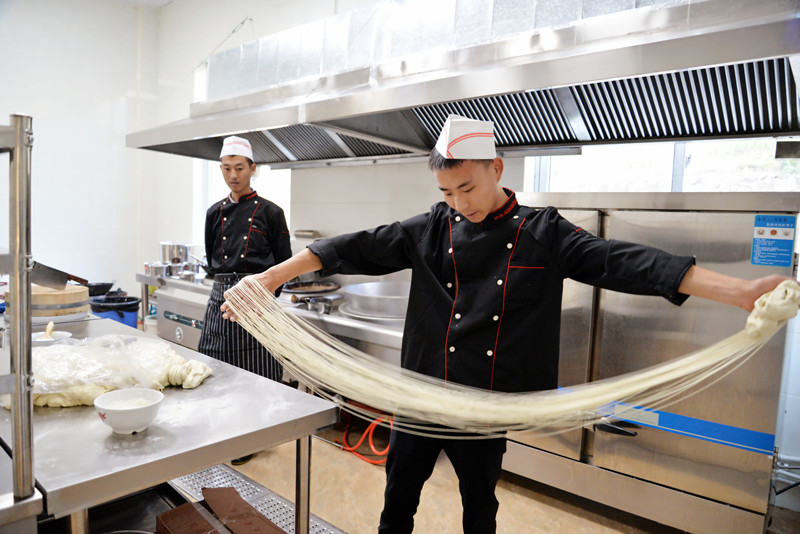 為改善職工就餐環境,提高職工的生活質量,日前,隴南公司本著“以人為本”、“服務職工”的宗旨,投資27萬元對職工食堂進行了升級改造。改造后的職工食堂功能布局合理,就餐環境舒適,服務質量貼心,受到了廣大職工群眾的普遍歡迎。圖為新聘廚師制作蘭州牛肉拉面的情景。(孫光亮/報道)