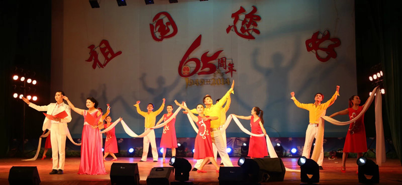 演出在永登公司百人大合唱《迎風飄揚的旗》、《共圓中國夢》嘹亮的歌聲里拉開帷幕。來自總部機關及13個子公司的近200名職工以舞蹈、獨唱、相聲、詩朗誦、琵琶彈唱、歌伴舞等形式,深情歌頌了新中國成立65年來祖國發生的翻天覆地的變化,熱情謳歌了企業伴隨新中國的發展而成長、壯大的輝煌歷程,表達了祁連山兒女對祖國生日的衷心祝福和一心向黨,為祖國、為企業奉獻的無私情懷。舞蹈《盛世歡歌》、《黃河暢想》、《不能忘卻的記憶》和《尖刀任務》熱情奔放,歌伴舞《歡聚一堂》、《跟你走》、《沒離開過》,情感飽滿,深切表達了公司職工熱愛祖國、祝福祖國的心聲。《藏情》、《情滿草原》、《歡迎來到雪域》、《天堂草原》、《花兒為什么這樣紅》、《采花》,分別用藏族、蒙古族、塔吉克族和漢族舞蹈,生動展現了祖國各族人民熱愛生活、熱愛家鄉的美好心愿。舞蹈《中國媽媽》細膩地塑造了一段跨國的母愛,描繪了中國母親偉大、本真、淳樸的胸懷和對弱小生命的珍視。舞蹈《飛天》以優美的舞姿,配合柔美的燈光,表現了盛世中國的景象,營造出一種和諧奮進的意境。舞蹈《相親相愛》則以絢麗的舞姿、時尚的音樂、動感的韻律成為晚會一道亮麗的風景。相聲《理解萬歲》以詼諧幽默的語言,反映了一線職工敬業、奉獻、專注、執著的美好品質。音詩畫《我找到了金鑰匙》,用激情澎湃的朗誦,讓觀眾一起分享著企業發展變化的喜悅,堅定祁連山兒女為祖國、為企業繁榮昌盛而奮斗的決心和信心。