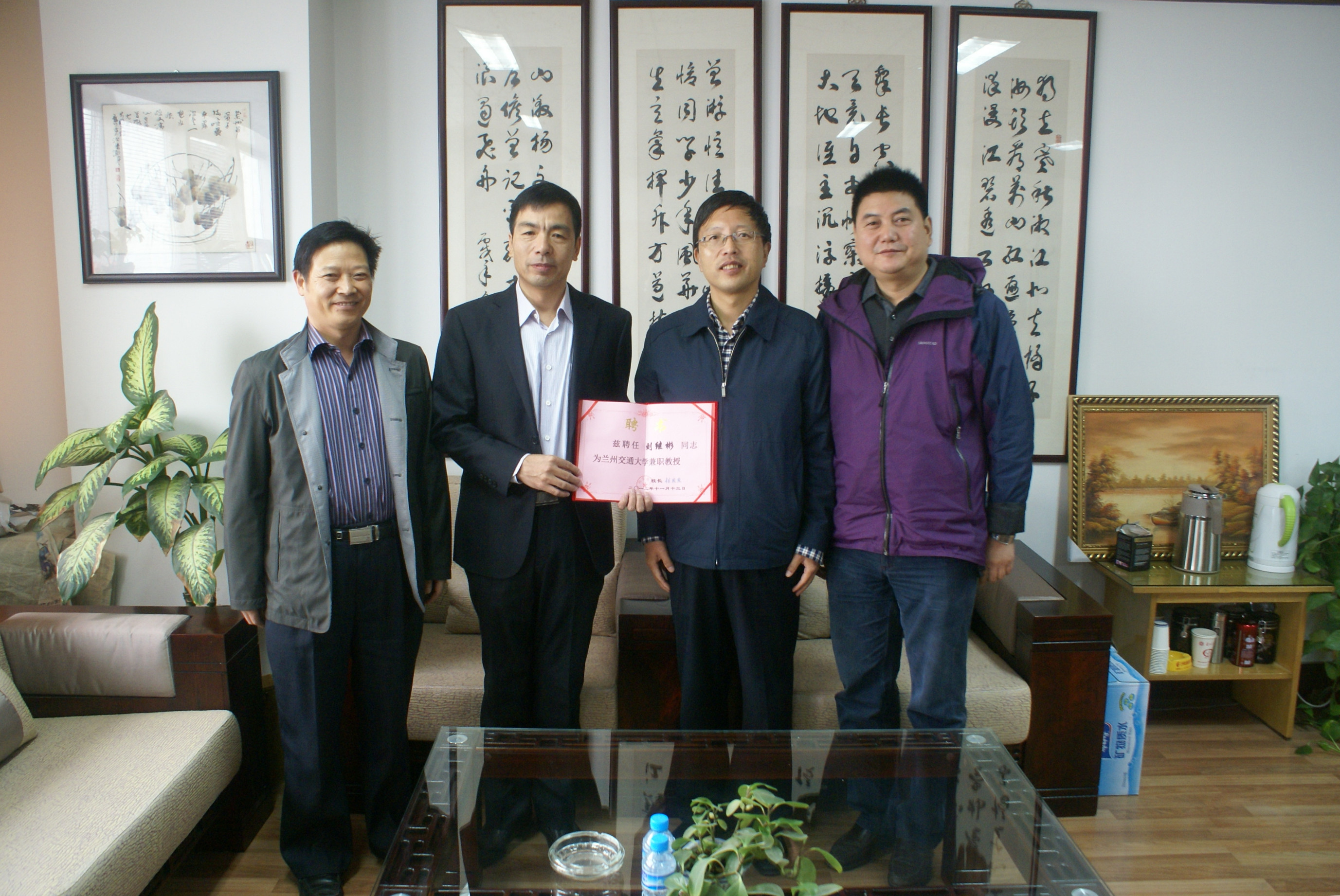 又(you)訊 近日,公司總裁劉繼彬被蘭州交通大學聘為兼職教授,蘭州交通大學校長楊子江為其頒發聘書。