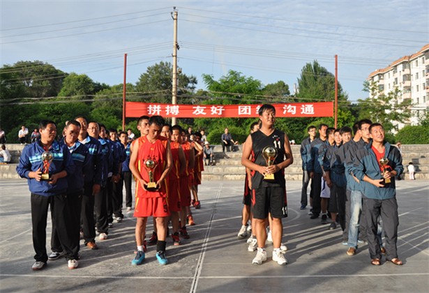 7月25日,公司第三屆職工籃球比賽總決賽在公司發祥地永登公司鳴哨開賽。來自東部賽區的平涼公司、漳縣公司代表隊與西部賽區的青海公司、蘭州商砼公司代表隊在這里分別進行了半決賽、決賽。最終,平涼公司奪得冠軍,青海公司獲得亞軍,漳縣公司、蘭州商砼公司獲得第三名。公司領導蔡軍恒、魏士淵、劉開祿、羅鴻基和部分子公司領導、永登公司職工家屬一起觀看了比賽,并為獲獎參賽隊頒獎。