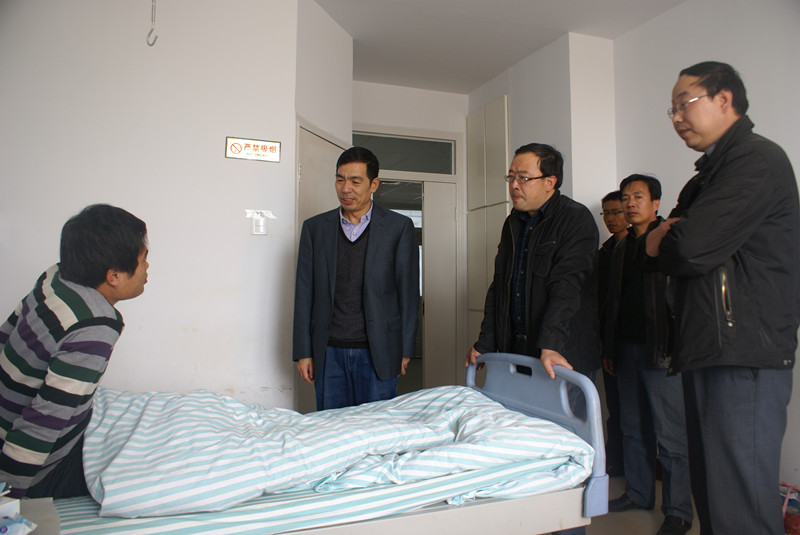 圖為劉繼彬在醫院看望慰問住院的職工。