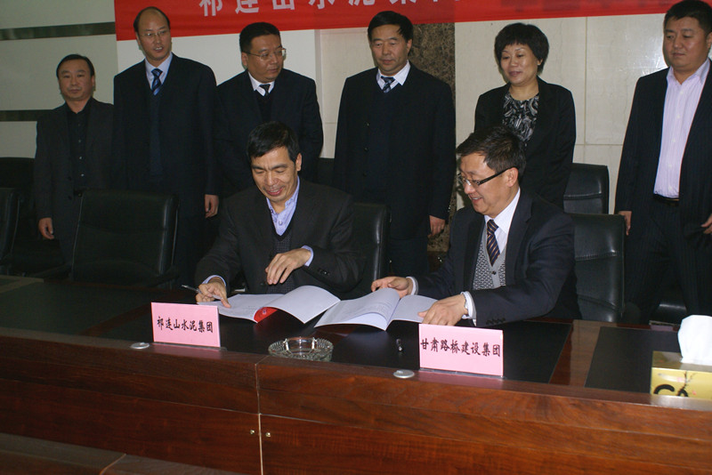 本網訊 11月24日,公司與甘肅路橋建設集團在公司四層會議室簽署了為期兩年的水泥產品供銷戰略合作協議。公司總裁劉繼彬、副總裁林海平,甘肅路橋集團董事長兼總經理劉建勛、副總經理姜敏、張偉等人參加簽約儀式。劉繼彬、劉建勛分別代表雙方在合作協議上簽字。