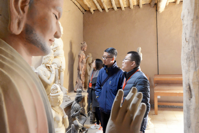 14日上午,勞模先進代表們走進莫高里工匠村,實地了解和感受莫高窟彩塑、壁畫制作、保護和傳承技藝。通過聆聽講解、親身感受等方式,大家對莫高窟彩塑從龍骨制作、初步塑形、細節塑造、打磨晾干、妝彩上色等主要制作工序有了系統了解,對我國古代工匠在雕塑、繪畫、營造、建筑等方面展現出的高超水平表示贊嘆,對當代敦煌學研究和敦煌文物保護及技藝傳承中涌現出的能工巧匠表示欽佩。大家紛紛表示,要繼承和發揚工匠精神,將“精進技能,追求卓業”融入到自己的本職工作中,在促進個人能力提升的同時,為企業高質量發展貢獻力量。